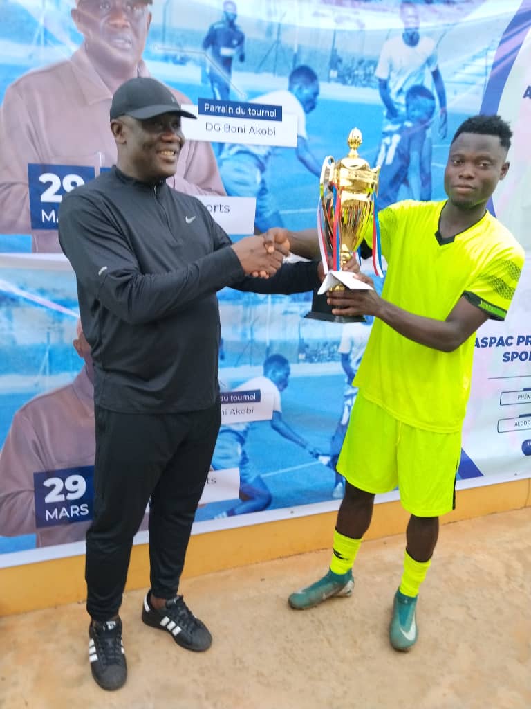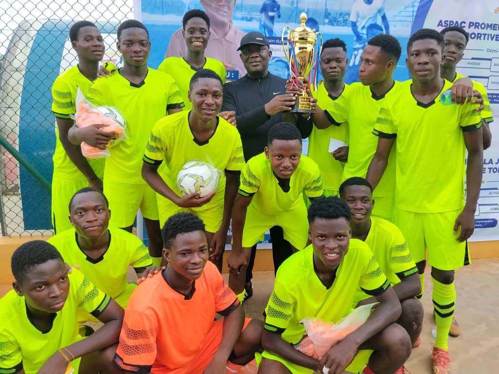 organisé ce dimanche 29 mars 2026 par l’association sportive du Port autonome de Cotonou, ce tournoi a rassemblé 4 équipes de jeunes de la commune de Toffo. Après une victoire serrée 1-0 en demi-finale, les jeunes de Alodo Sports ont largement dominé leurs adversaires de Phénix. Dans ce derby de Toffo, ce sont les Fluo qui vont inscrire 4 buts contre 1 pour les blancs.