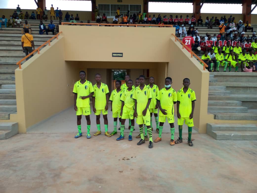 Mercredi 17 Novembre 2021. Aspac a inauguré par un match de Ligue Pro le stade flambant neuf de Toffo, face à Éternel 1-0. Nos jeunes qui vivent à 10 minutes du stade sont allés découvrir les installations.